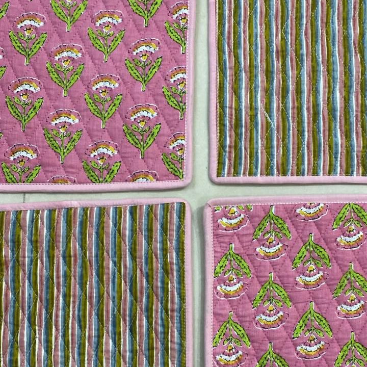Pink Butaa Quilted Reversible Table Mats